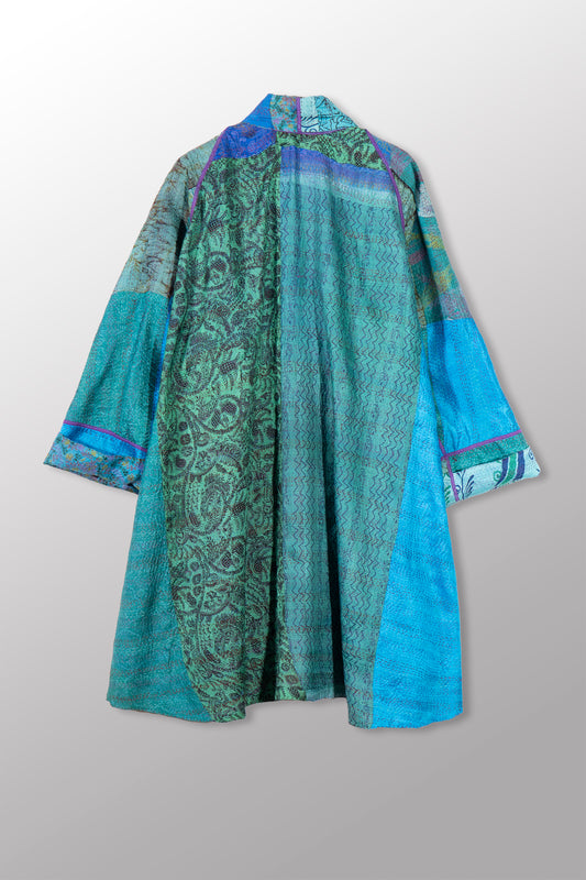 VINTAGE SILK KANTHA KIMONO LONG JKT - sv2005-0080a -