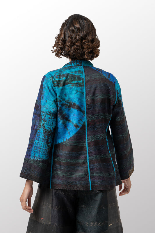 MONE SHIBORI TIE DYE KANTHA SHORT JACKET - ms5007-tuq -