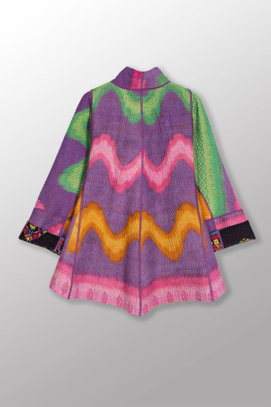 VINTAGE SILK GEORGETTE COTTON KANTHA A-LINE JKT - gc2003-0035a -