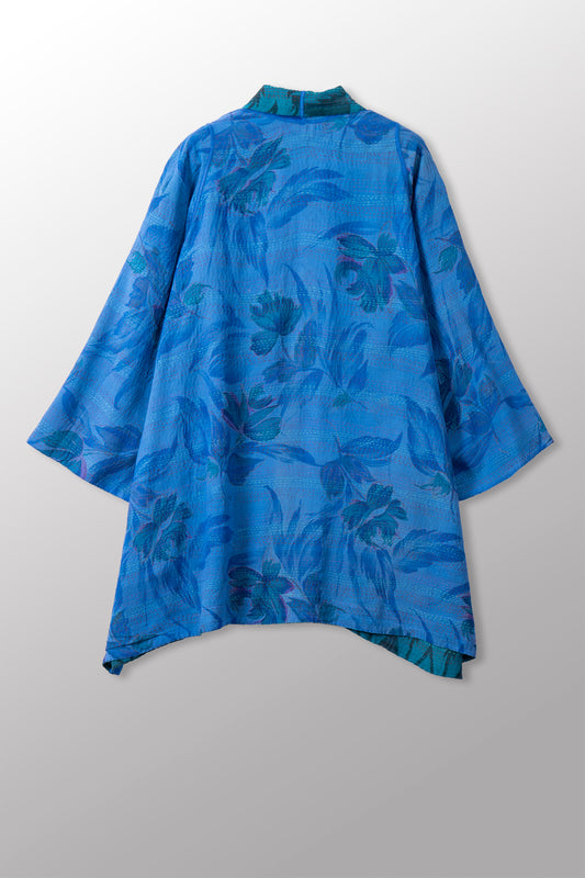 BLOOMING FLOWERS KANTHA KIMONO LONG JACKET - bf4005-prp -