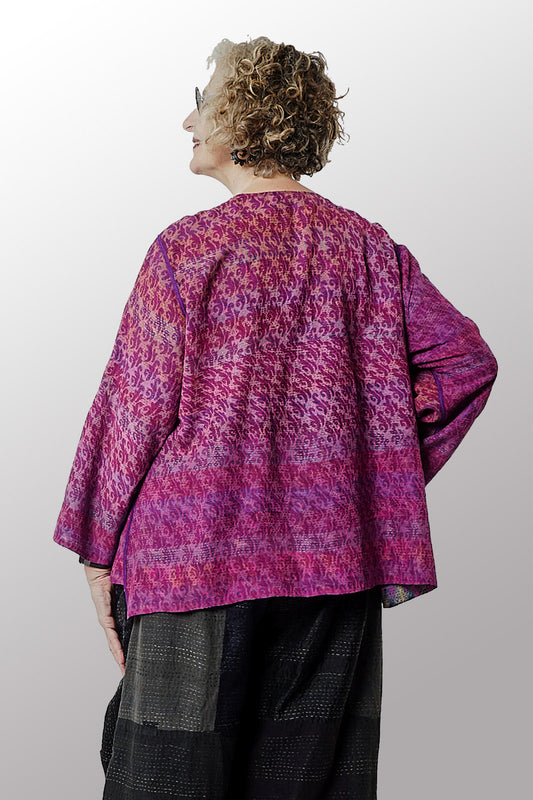 VINTAGE SILK GEORGETTE KANTHA A-LINE SHORT JKT - sg2019-0001a -