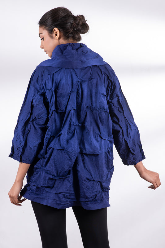 DYED COTTON SILK HEAVY VOILE WAVY TUCK COCOON JACKET - dh1063-blu -