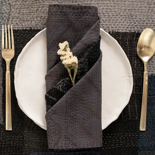 Landscape Handmade Vintage Kantha Napkin -Black -