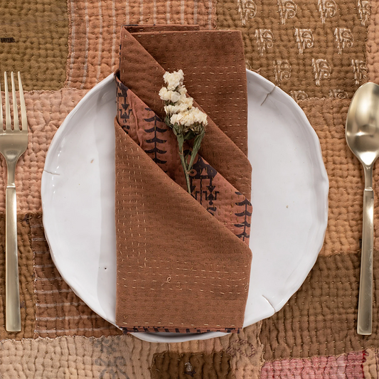 Vintage Fray Patch & Ombre Kantha Napkin -Chocolate -