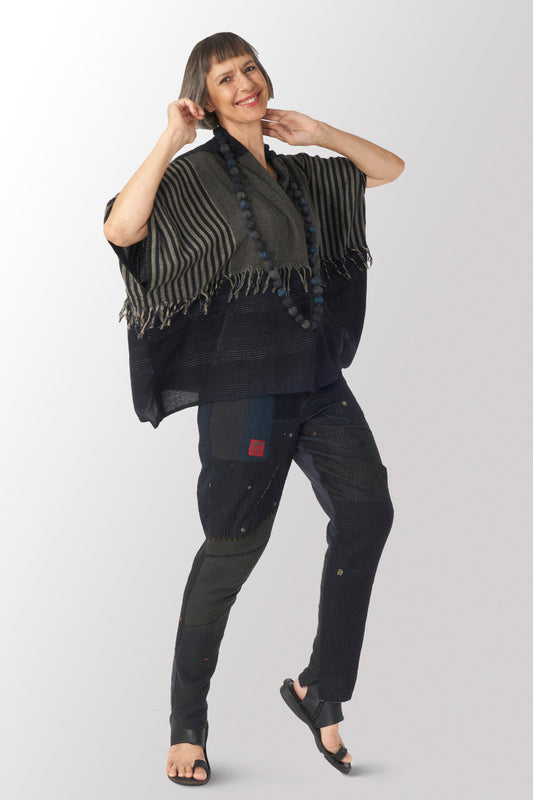 COTTON SILK SW PATCH KANTHA SMALL NUTS LONG NECKLACE - ws2706-blk -