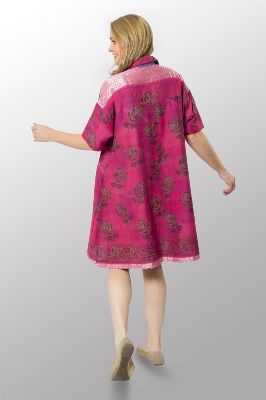 VINTAGE COTTON KANTHA HALF SLV. SHIRT DRESS - cv2429-0024a -