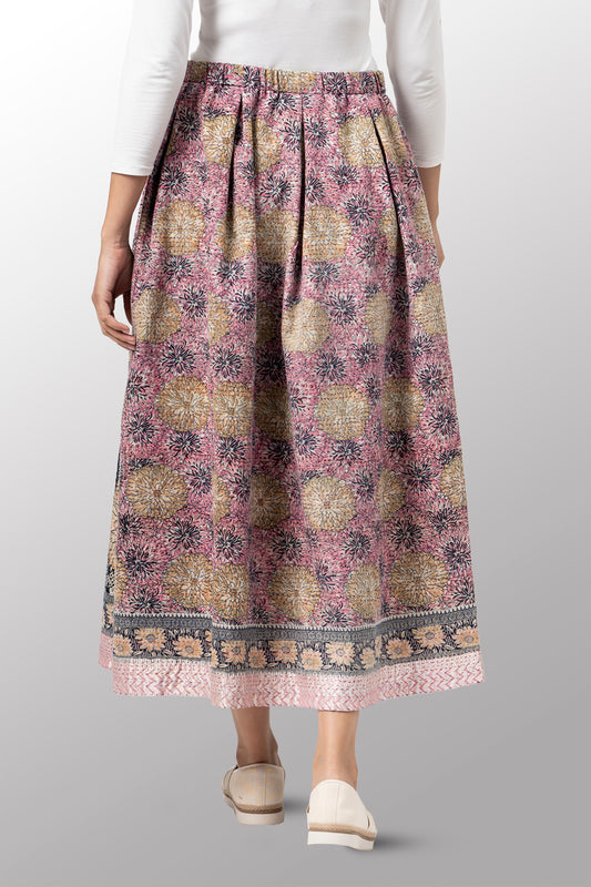 VINTAGE COTTON KANTHA TUCKED GATHER SKIRT - cv2663-0002m -