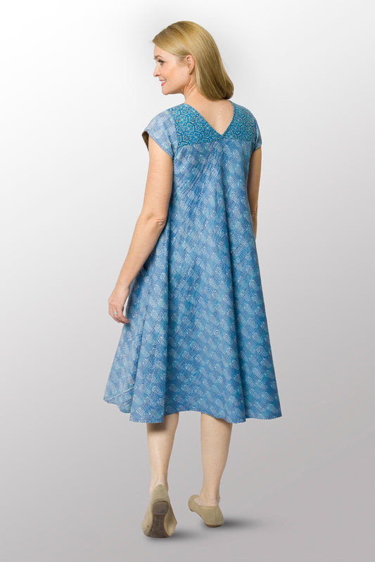 VINTAGE COTTON KANTHA CAP SLV. FLARE DRESS - cv2425-0011s -