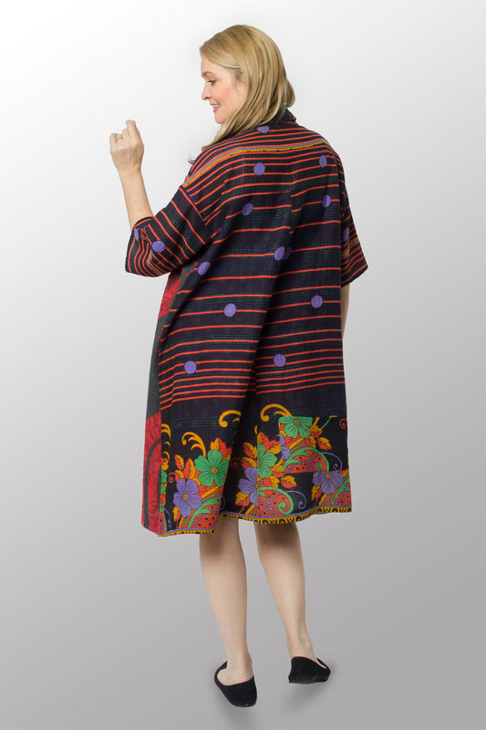 VINTAGE COTTON KANTHA OVERSIZED MINI COAT - cv2332-0007a -