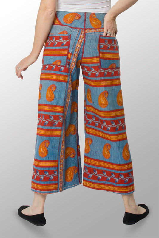VINTAGE COTTON KANTHA MID RISE WIDE LEG PANTS - cv2665-0002s -