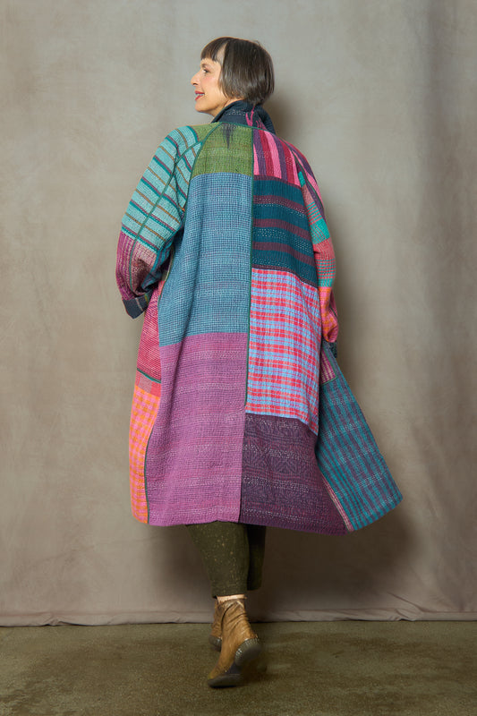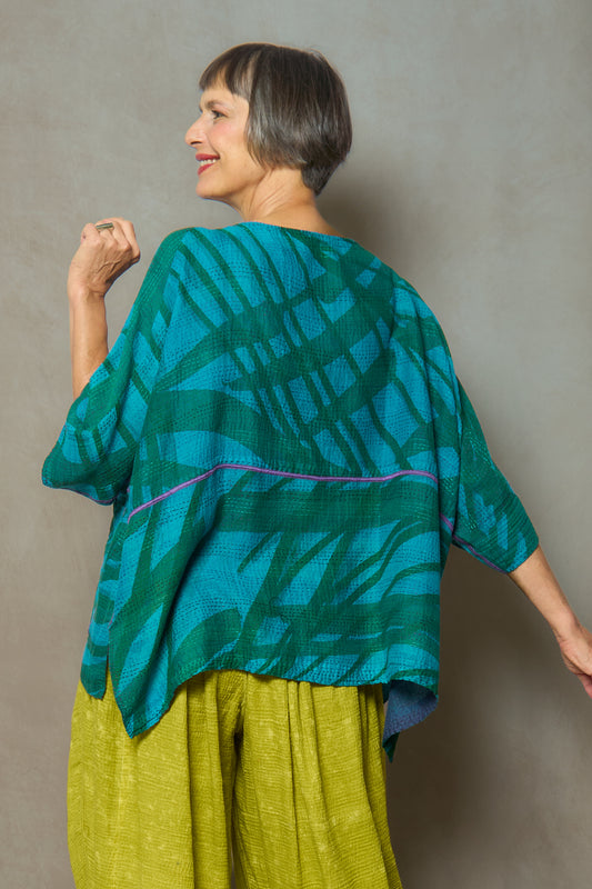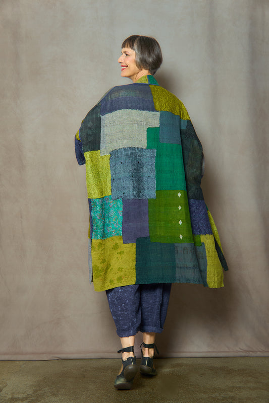 MARBLE FRAY PATCH KANTHA PONCHO TOPPER - mf2356-grn -