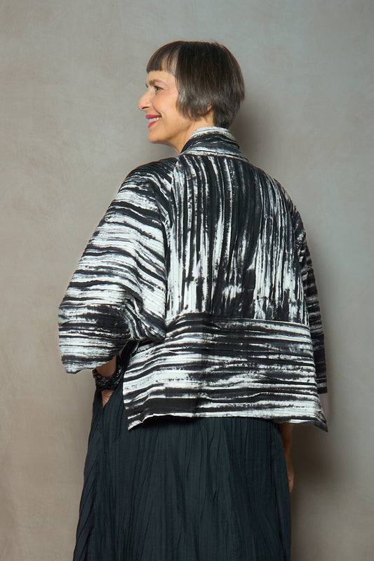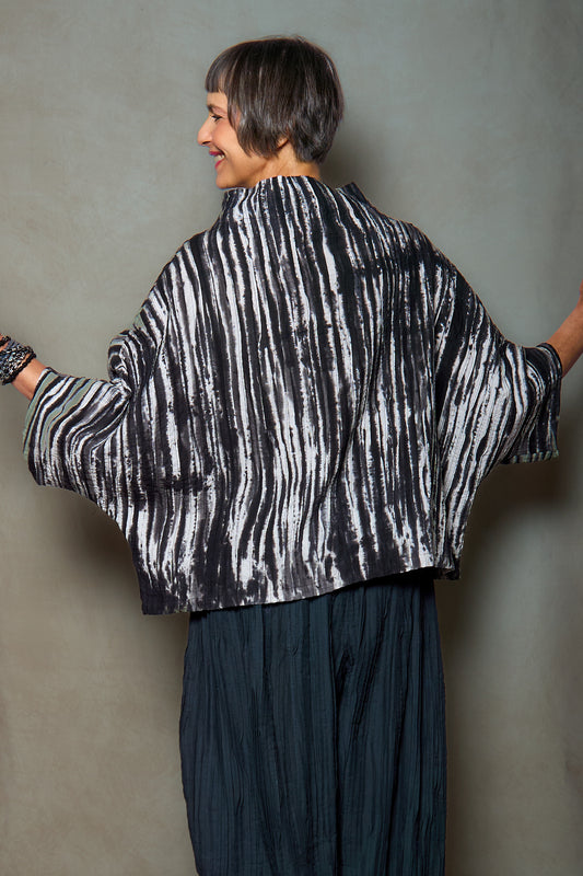 CAMBRIC TIE DYE RIPPLE TUCK LANTERN SLV. SHRUG - tr1j103-blk -