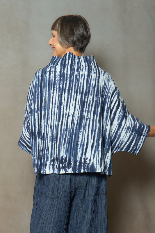 CAMBRIC TIE DYE RIPPLE TUCK FUNNEL NECK TOP - tr1t102-nvy -