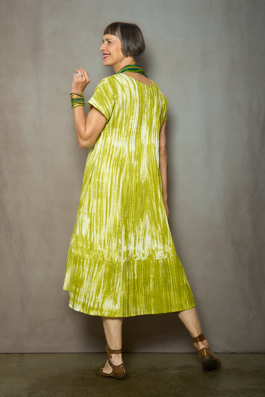 CAMBRIC TIE DYE RIPPLE TUCK V-NECK SHAPED MIDI DRESS - tr1465-lim -
