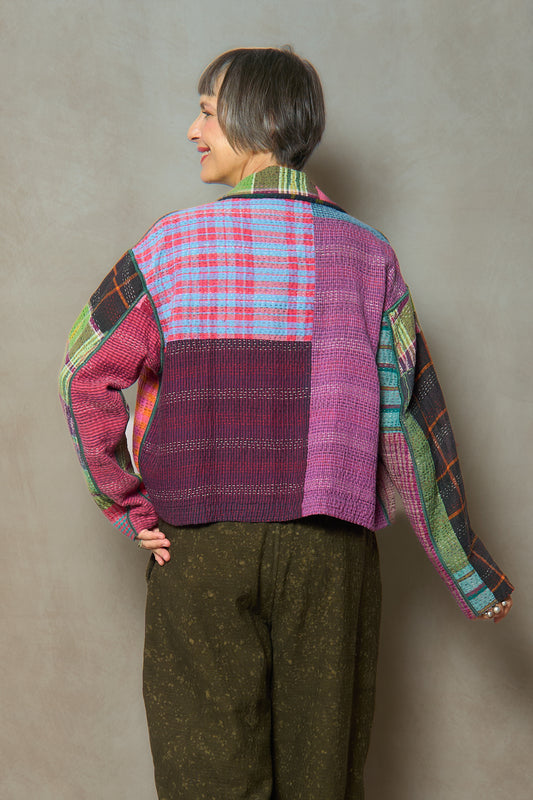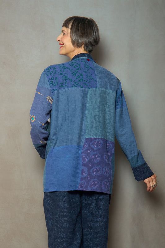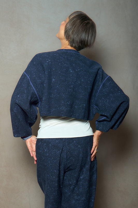 DUCK SUN DYE WITH PATCH KANTHA SLEEVE JACKET - us2090-nvy -