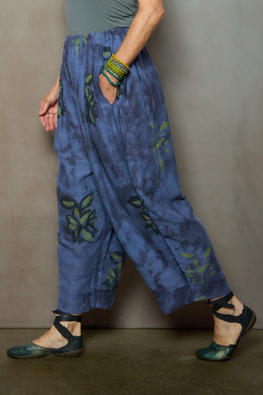 CLOUD TIE DYE FLORAL KANTHA TUCKED GATHER PANTS - uf2677-blu -