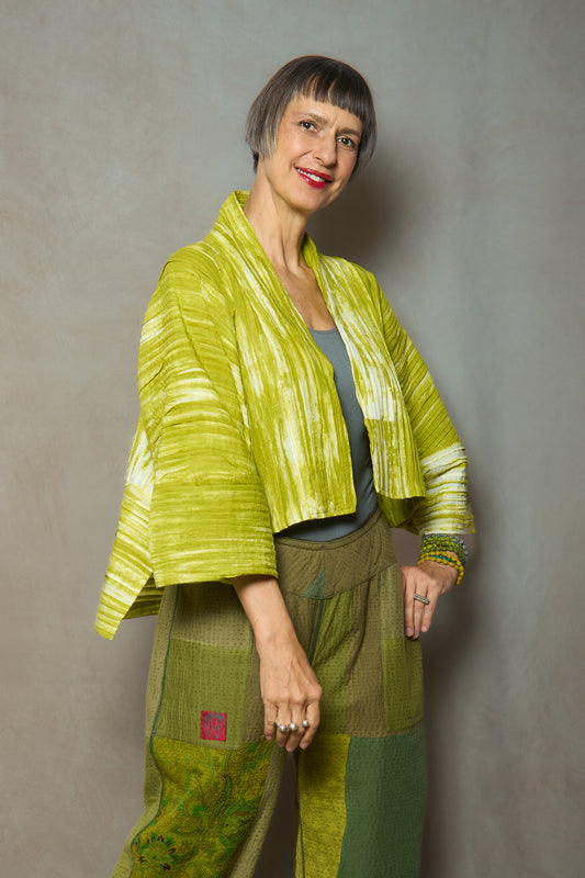 CAMBRIC TIE DYE RIPPLE TUCK LANTERN SLV. SHRUG - tr1j103-lim -