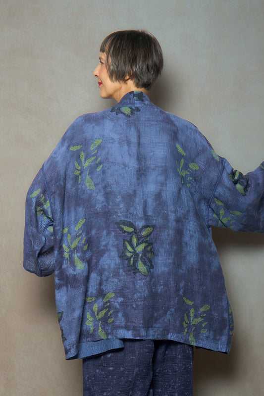 CLOUD TIE DYE FLORAL KANTHA KIMONO COLLAR JACKET - uf2j108-blu -