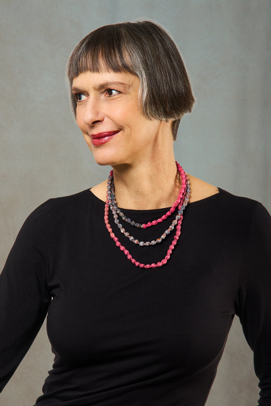 VINTAGE SILK KANTHA 5 STRAND NECKLACE - sv2730-pik -