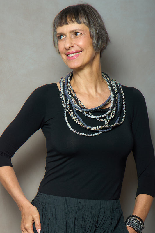 VINTAGE SILK KANTHA 5 STRAND NECKLACE - sv2730-blk -