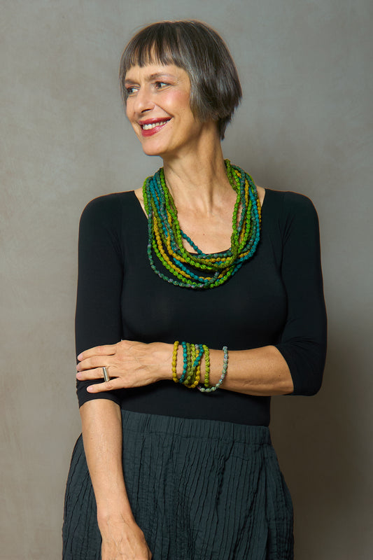 VINTAGE SILK KANTHA 5 STRAND NECKLACE - sv2730-grn -