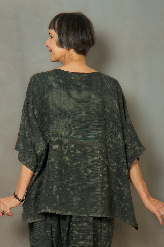 SAND SUN DYE RIPPLE KANTHAL BOAT NECK DOLMAN TOP - rs2t100-grn -