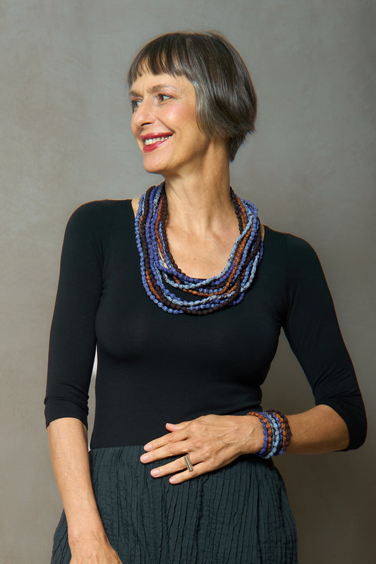 VINTAGE SILK KANTHA 5 STRAND NECKLACE - sv2730-blu -