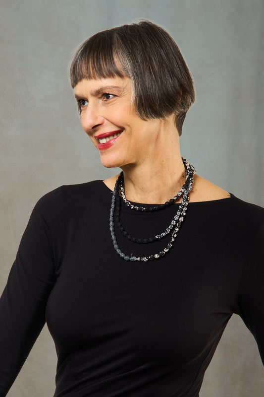 VINTAGE SILK KANTHA MULTIPURPOSE NECKLACE - sv2729-blk -