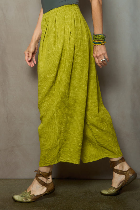 SAND SUN DYE RIPPLE KANTHA TUCKED GATHER PANTS - rs2677-grn -