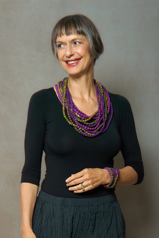 VINTAGE SILK KANTHA 5 STRAND NECKLACE - sv2730-prp -
