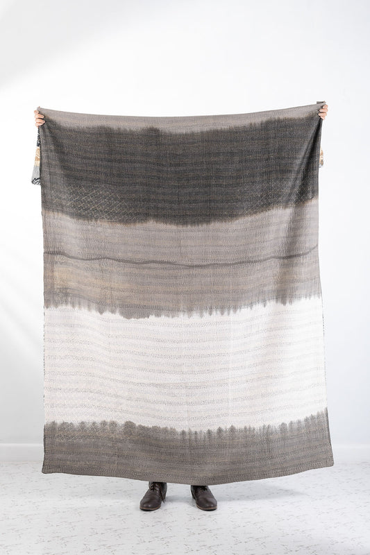 Mosaic Fray Handmade Vintage Kantha Throw -Taupe -