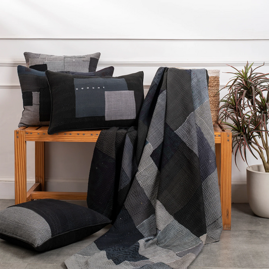 Vintage Fray Patch & Ombre Kantha Throw -Navy -