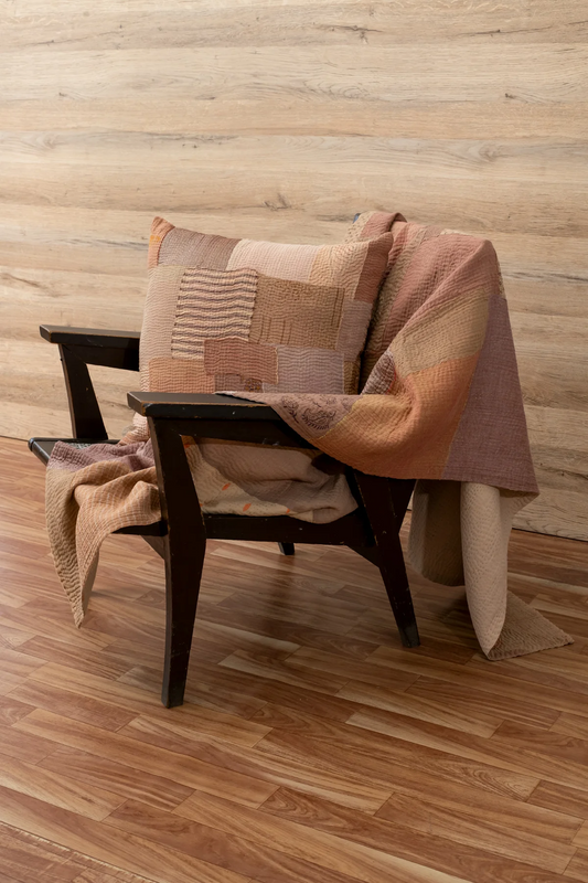 Mosaic Fray Handmade Vintage Kantha Throw -Mushroom -