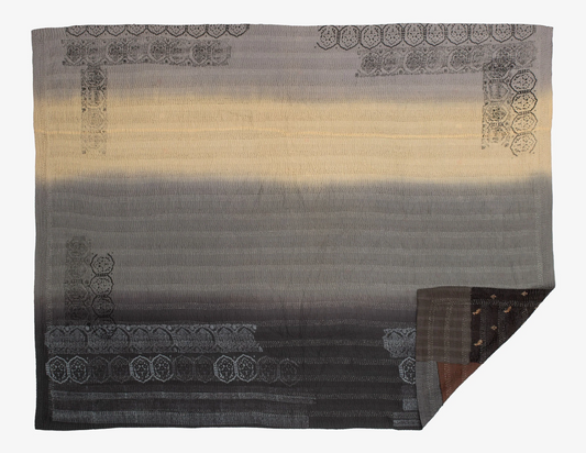 Vintage Fray Patch & Ombre Kantha Throw -Chocolate -
