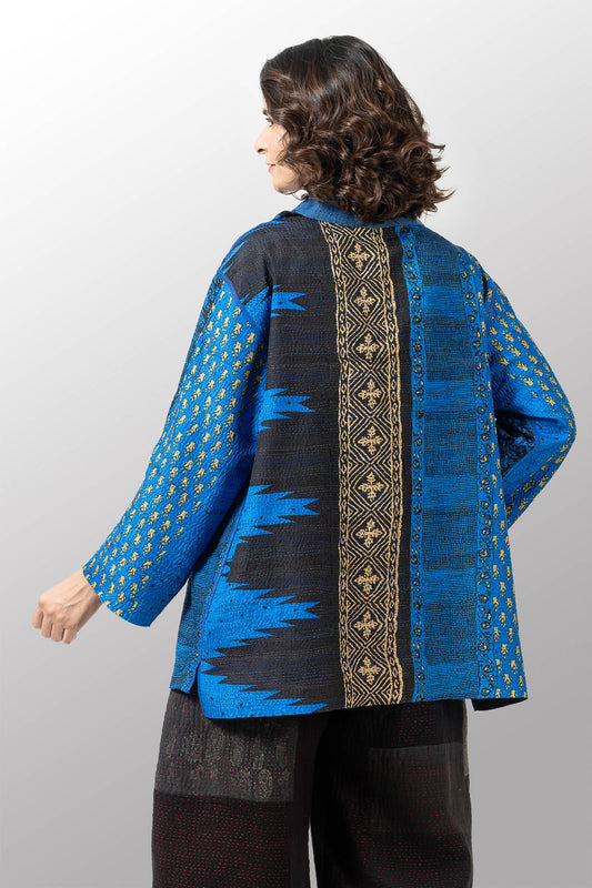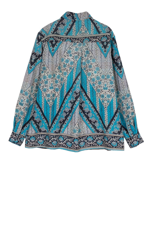 MOSAIC TILE PATCH KANTHA CAMP SHIRT - mt1525-blu -