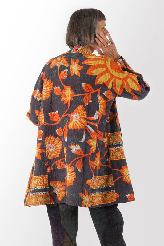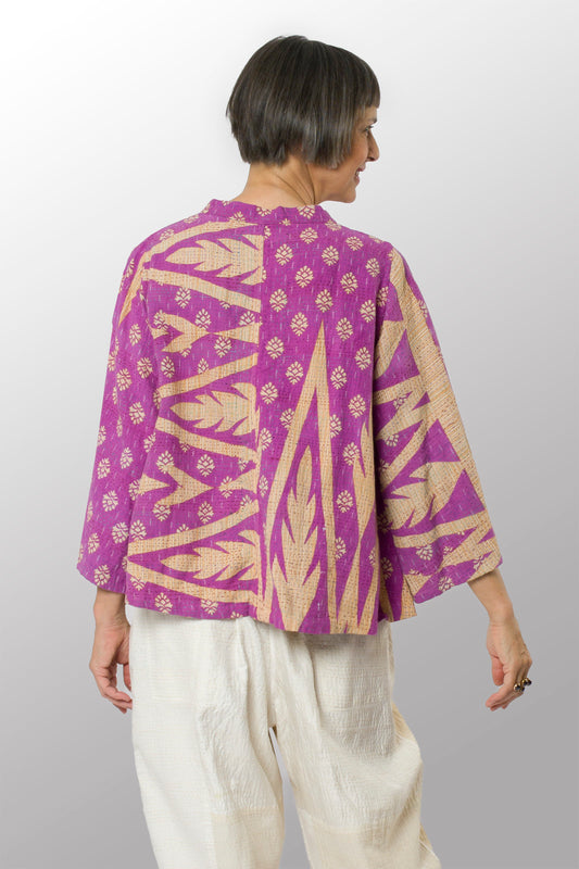 VINTAGE COTTON KANTHA V-NECK FLARE TOP - cv2567-0001m -