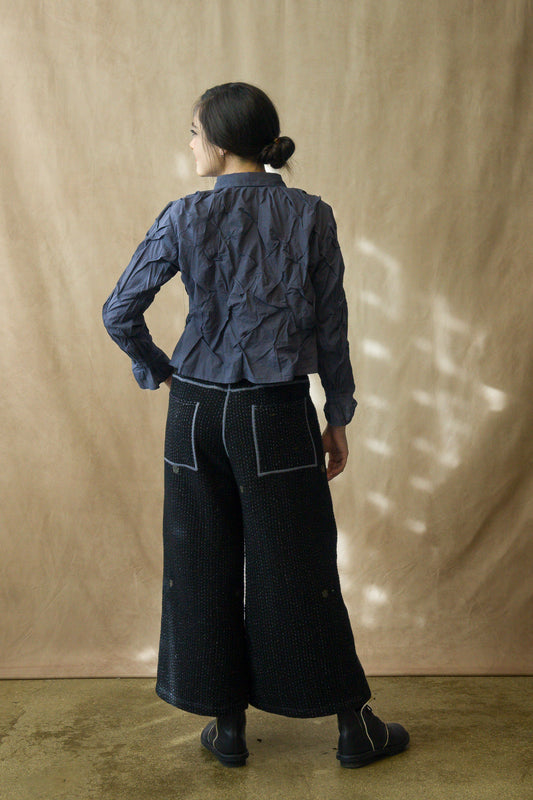 OVERDYED COTTON PAISLEY KANTHA CROPPED TENT SHIRT - ov-cp2596-blu -
