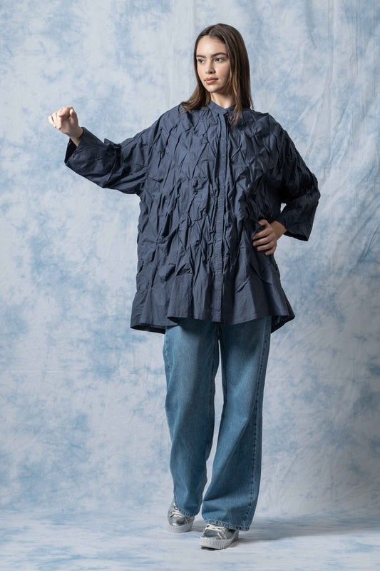 POLISHED COTTON WAVY TUCK OVERSIZED SHIRT - bl-wl1555-gry -