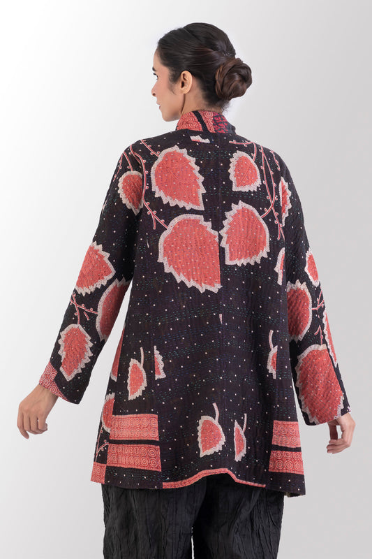 ORGANIC LEAVES KANTHA CROPPED TENT SHIRT - ol2596-blk -
