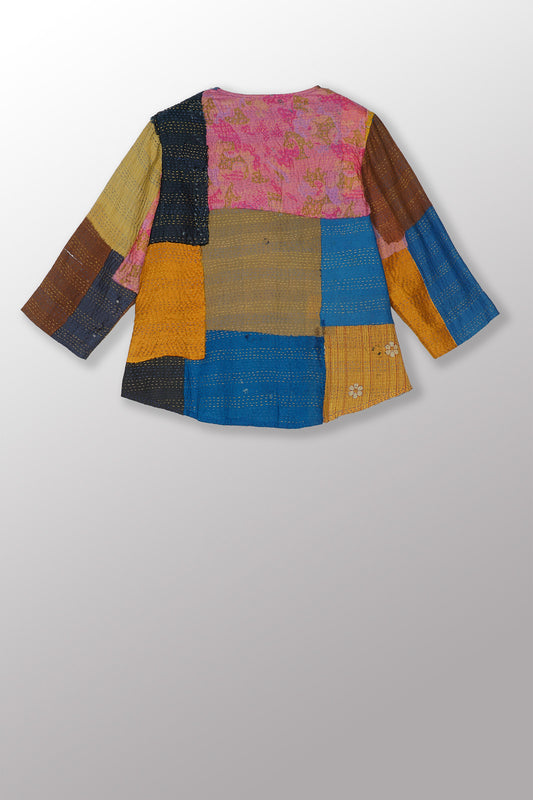 MOSAIC FRAY PATCH KANTHA KURTA TOP - zb2586-mlt -