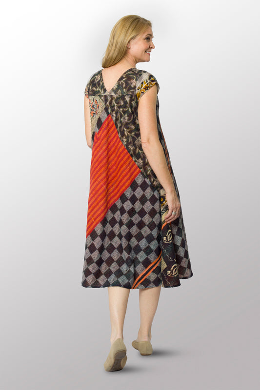 VINTAGE COTTON KANTHA CAP SLV. FLARE DRESS - cv2425-0017m -