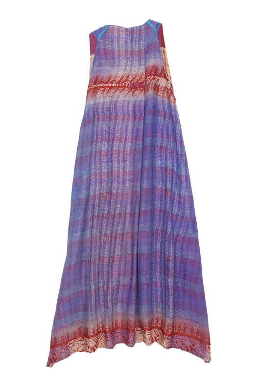 VINTAGE SILK PATCH KANTHA BACK PLEATED VEST MAXI - vp2222-blu -