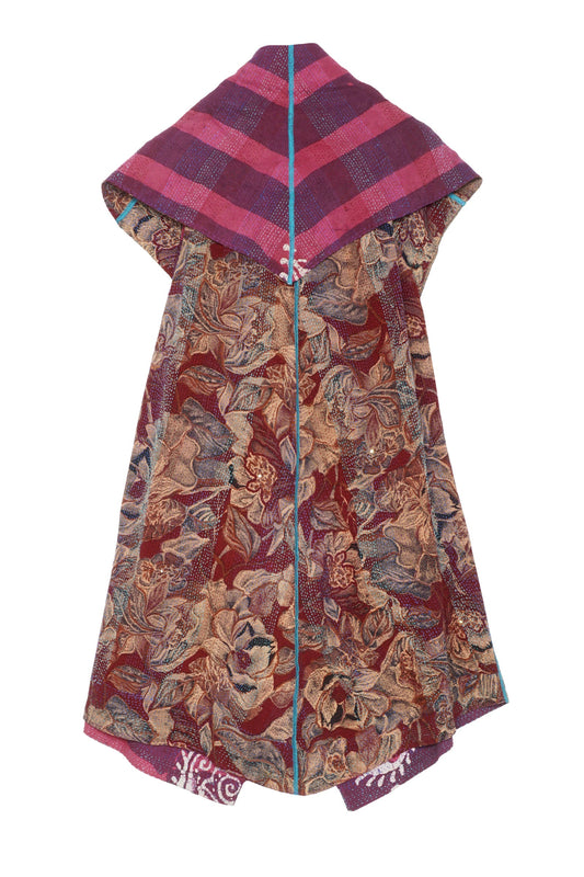 VINTAGE SILK KANTHA BACK PLEATED VEST MAXI - sv2222-0008a -