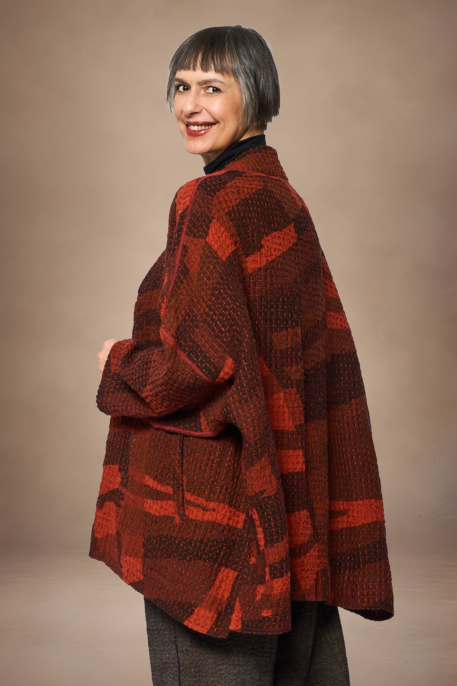 ABSTRACT WAFFLE KANTHA KIMONO WRAP SHORT - bw3358-org -