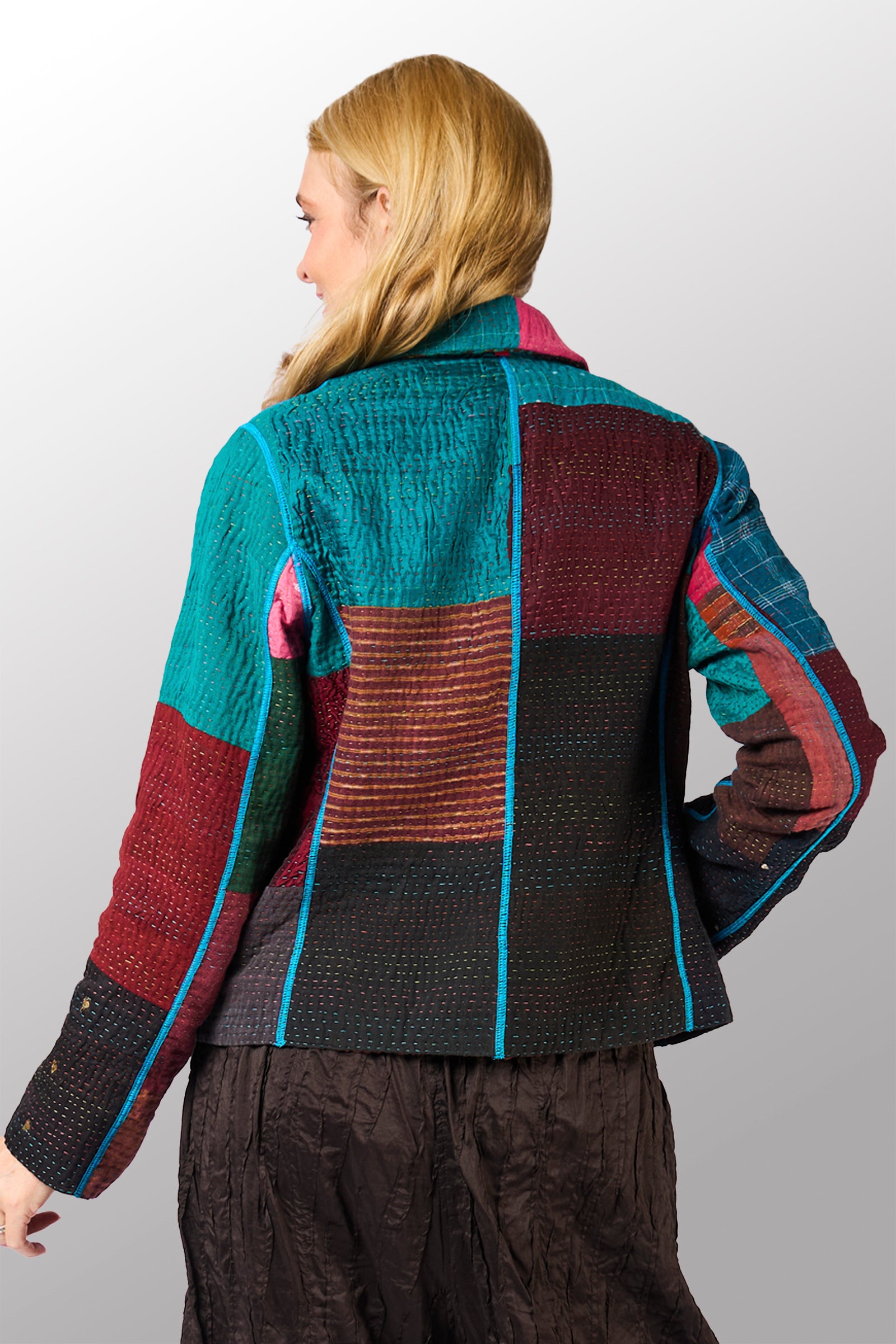 4 Layer Vintage Saris with Hand Stitches on Entire Garment - Reversible