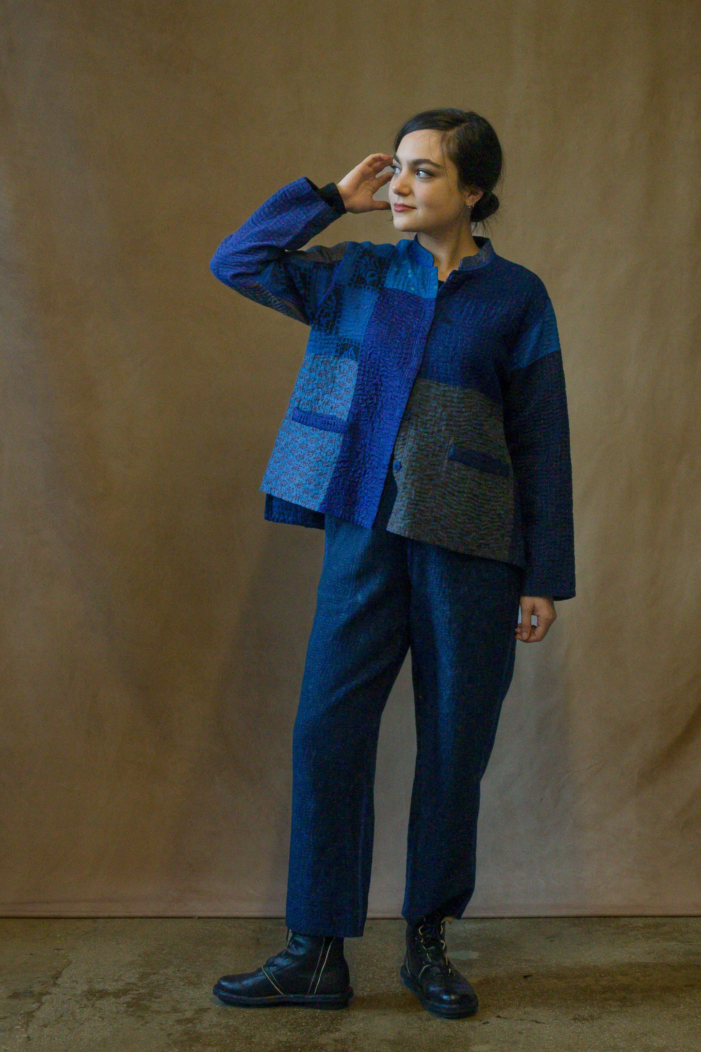 BBB PATCH KANTHA KAFTAN JACKET SHORT - bl-bbb4088-nvy -