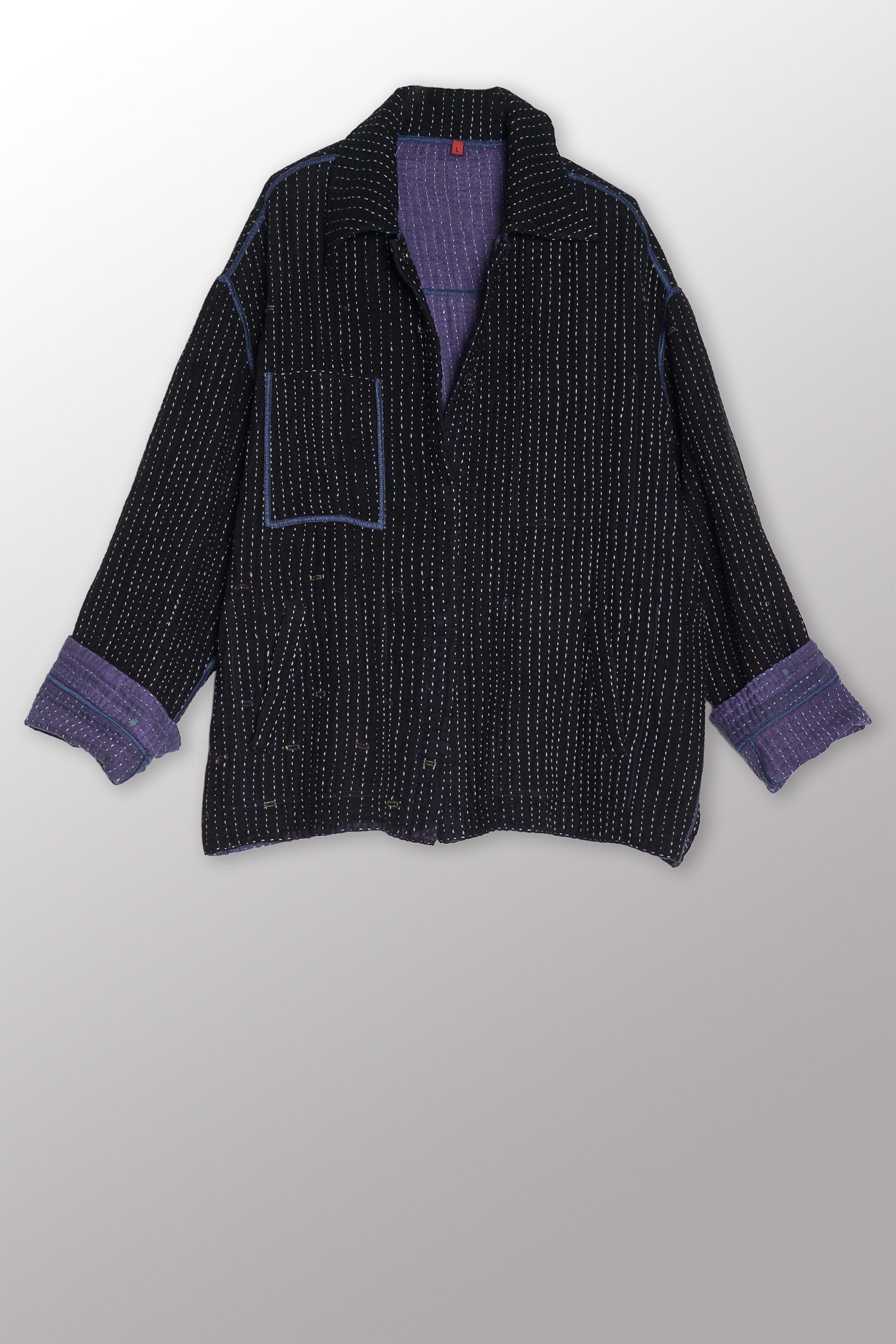 BBK SOLID KANTHA WORKERS JACKET - bl-bbs4085-blk -