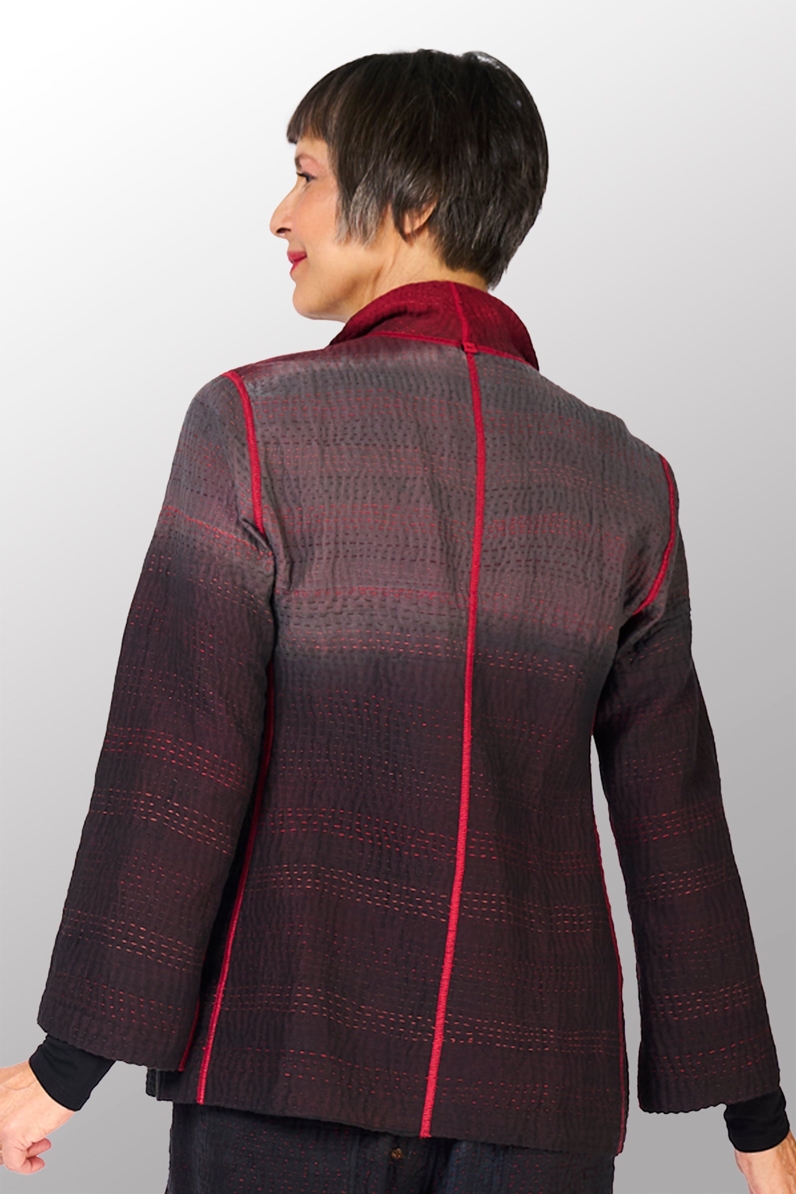 BIG PRINTED PATCH WITH OMBRE BACKING KANTHA SHORT JACKET - px4007-red -