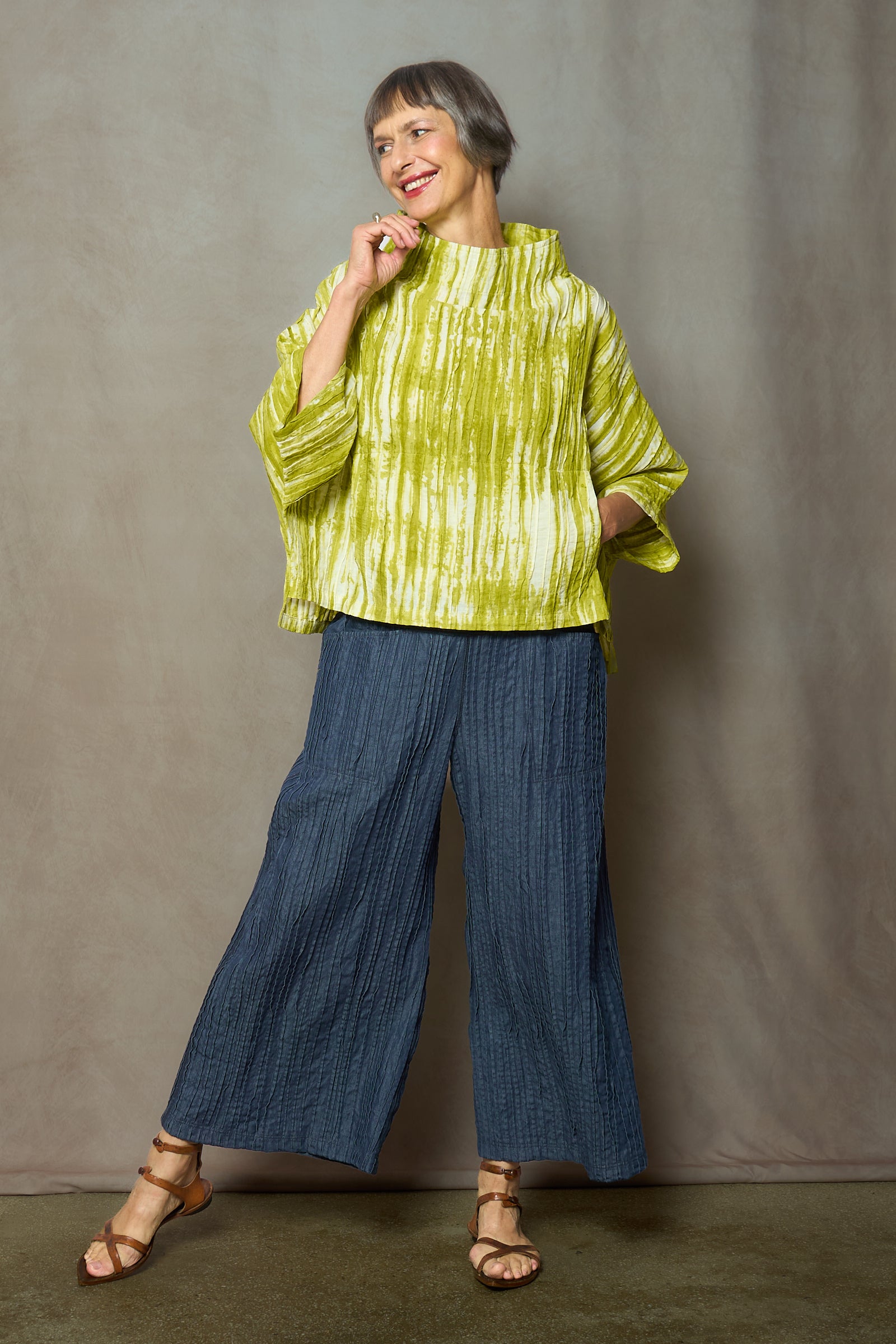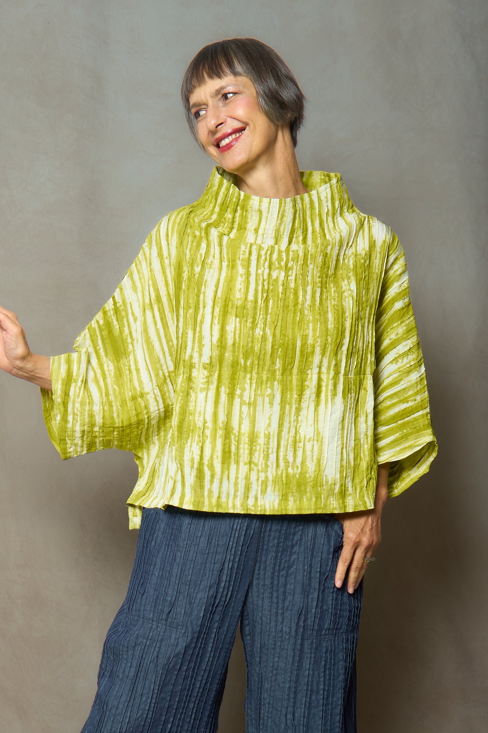 CAMBRIC TIE DYE RIPPLE TUCK FUNNEL NECK TOP - tr1t102-lim -