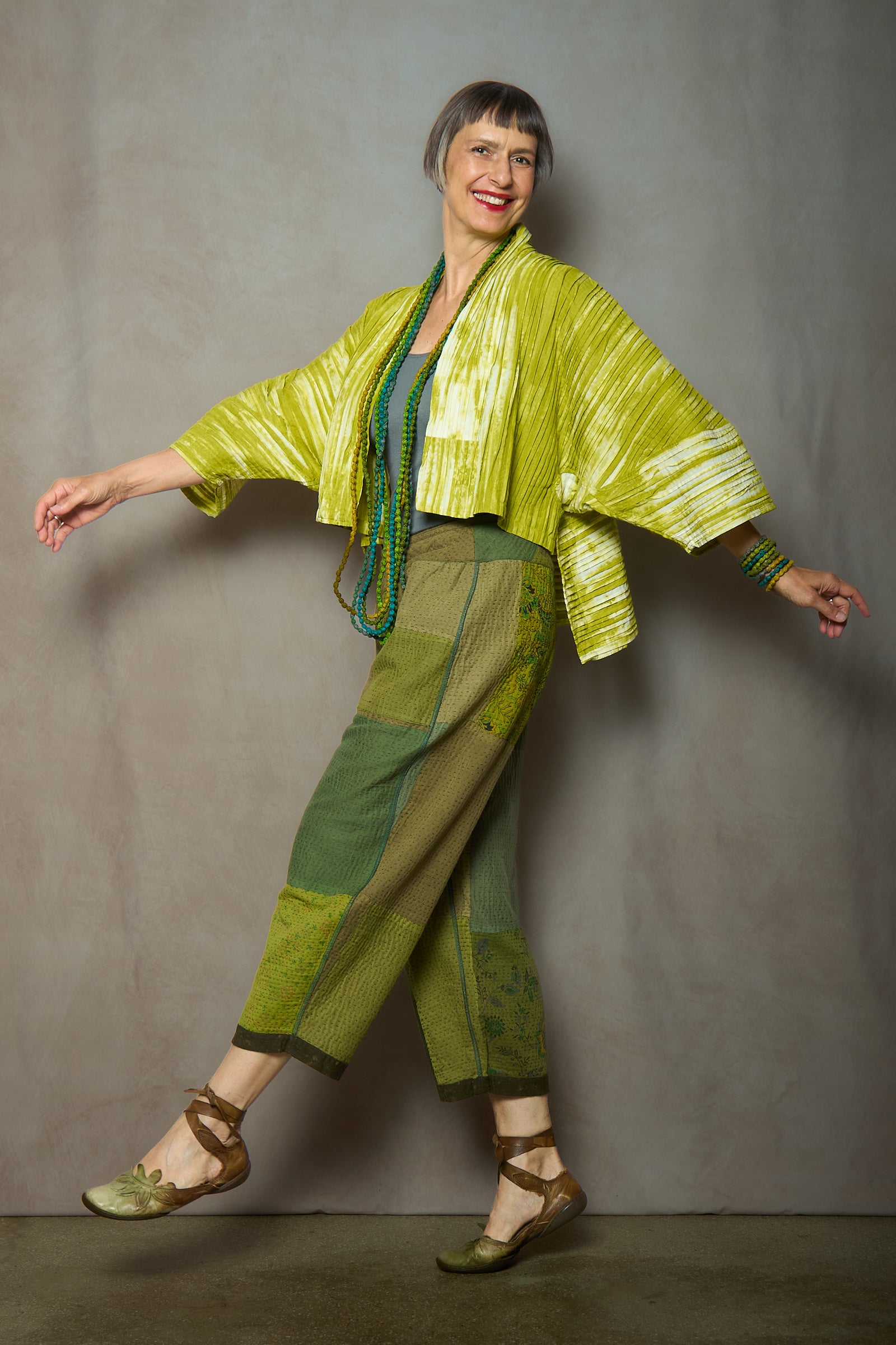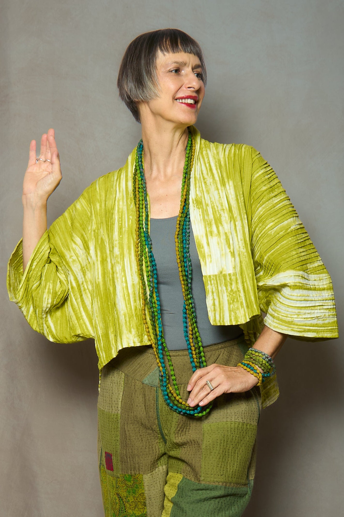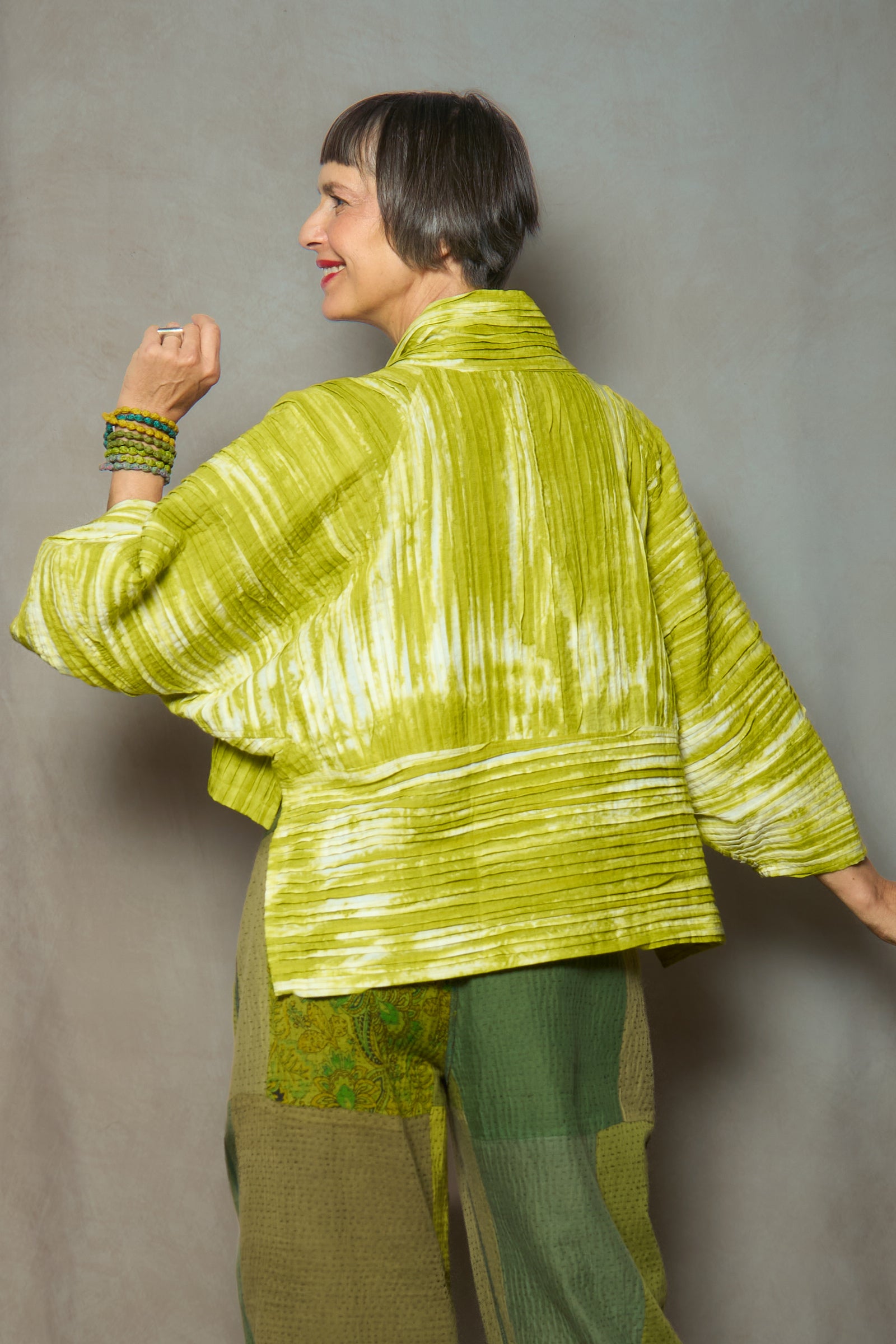 CAMBRIC TIE DYE RIPPLE TUCK LANTERN SLV. SHRUG - tr1j103-lim -